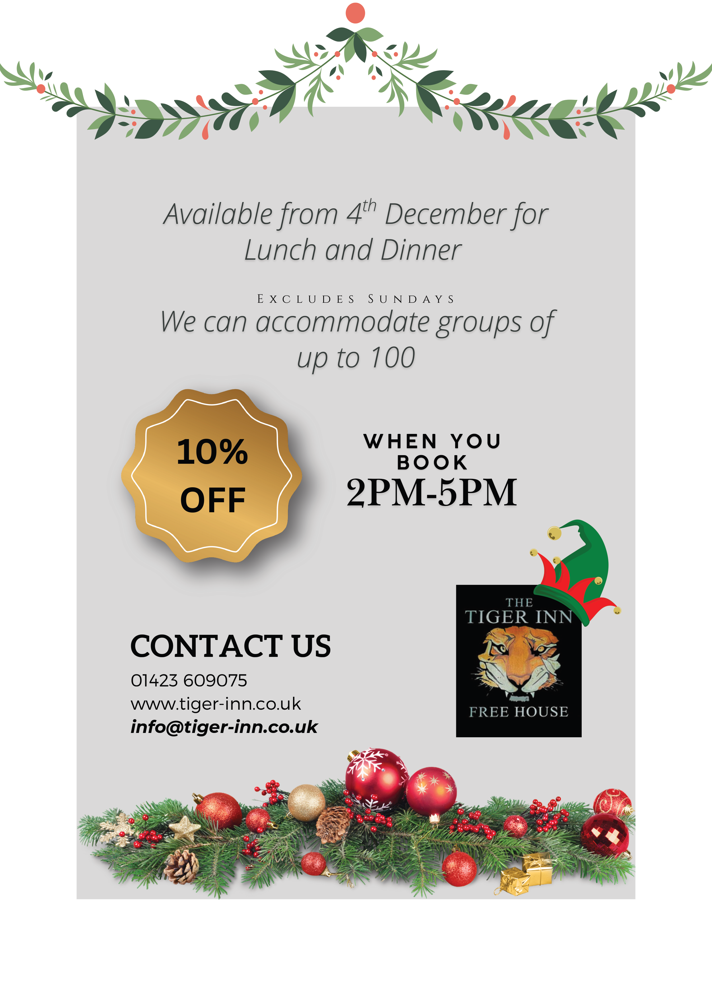 MONDAY - SATURDAY A LA CARTE TIGER MENU